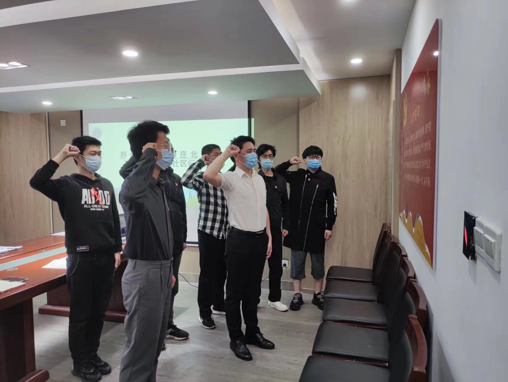 苏州大学天赐庄校区北区“一站式”学生社区行动支部的成员们一同重温入党誓词,践行“全心全意为人民服务”的宗旨。依托行动支部和医学专业成立5个服务小组:学生擦伤摔伤应急小组(处理简单伤口)、校园物资运输小组(协助运输生活物资)、运动场维护小组(定期打扫运动场地)、各类比赛计分小组、宿舍检查小组,引领天赐庄校区北区留校生高效学习、健康生活、和谐相处,切实引领好、服务好每一位留校的学生,请学校和家长放心。