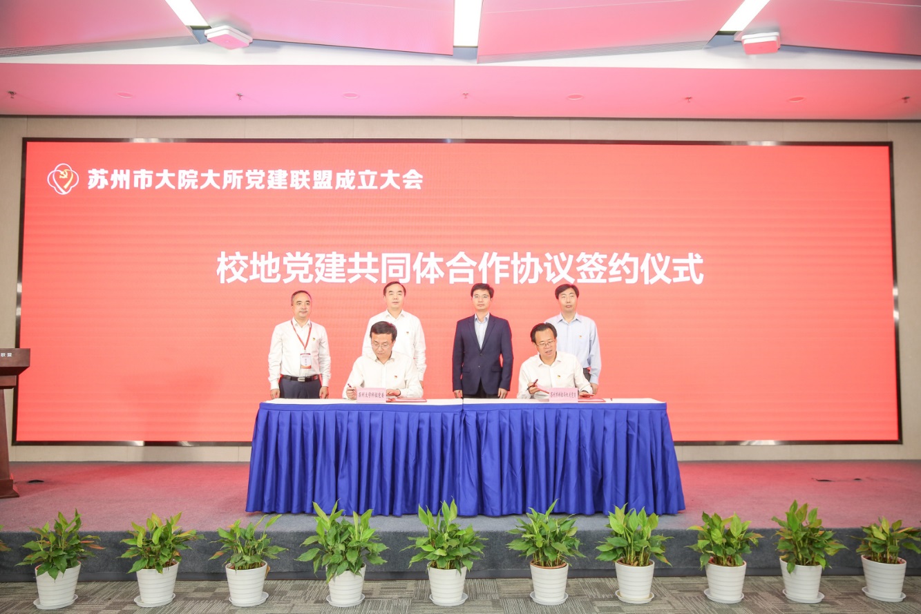 成立科技党委,推进与研发机构党建合作共同体建设,发起成立苏州市大院大所党建联盟,围绕长三角一体化等重大战略,推进教育链、人才链、创新链与产业链有机衔接,学校先后与地方政府、行业企业共建44个协同创新中心、100余家联合研发中心,300多位国家级高层次人才成为推动江苏科技创新和产业升级的重要力量。